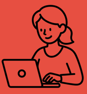 • Black outline of a brain on a red background